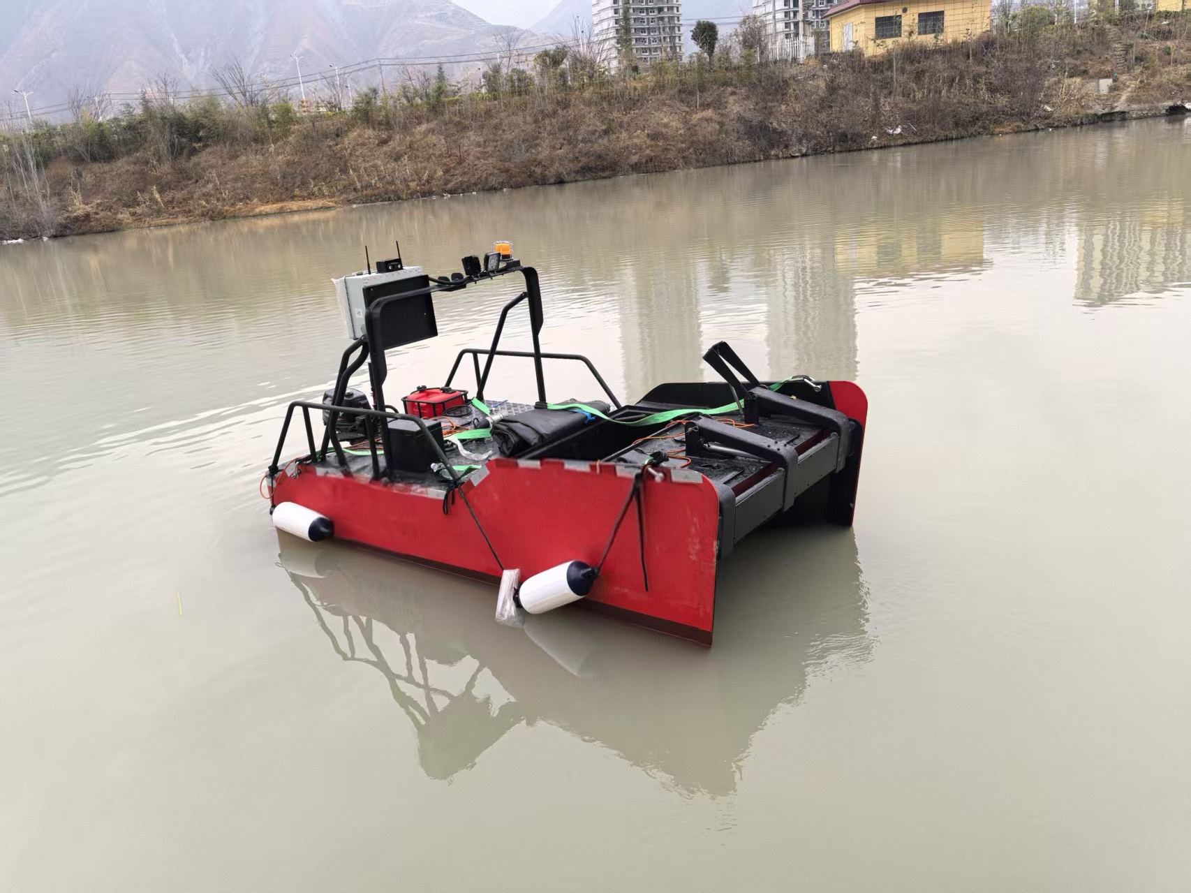 在河流、近海或港湾水域环境中,不更换收油头情况下,应对中高低粘度油品和无粘度漂浮表面不溶于水液体的回收,可回收不同粘度的油品且对不同的油层厚度均可实现回收,回收效率不低于95%。具备航行、收油、垃圾回收作业等远端遥控操作功能,回收成功可自动分离水和固体并分别储存。高清摄像头可远距离查看水面污染情况。